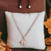 This exquisite necklace is a masterpiece of delicate artistry. Crafted in shimmering rose gold, it features a captivating pendant that blooms with a radiant diamond flower. The petals of the flower are meticulously set with sparkling diamonds, creating a breathtaking display of brilliance. The pendant hangs gracefully from a delicate rose gold chain, completing this elegant and timeless piece of jewelry. This necklace is perfect for any occasion, from a special evening out to a romantic dinner.
