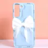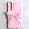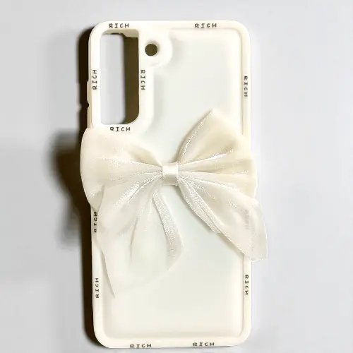 Elevate your Samsung S21 Fe with the Bow Back Cover, a perfect blend of elegance and protection tailored for the modern woman. Crafted from high-quality soft silicone, this case features a unique curly wave design adorned with dried pressed epoxy real flowers and fixed glitter, offering a luxurious and feminine aesthetic. The built-in wrist strap ensures a secure grip, reducing the risk of accidental drops. Raised bezels around the camera and screen provide added protection against scratches and impacts. The slim profile maintains the phone’s sleek look while offering comprehensive protection. Ideal for those seeking a stylish yet functional accessory, this back cover is a must-have for fashion-forward individuals